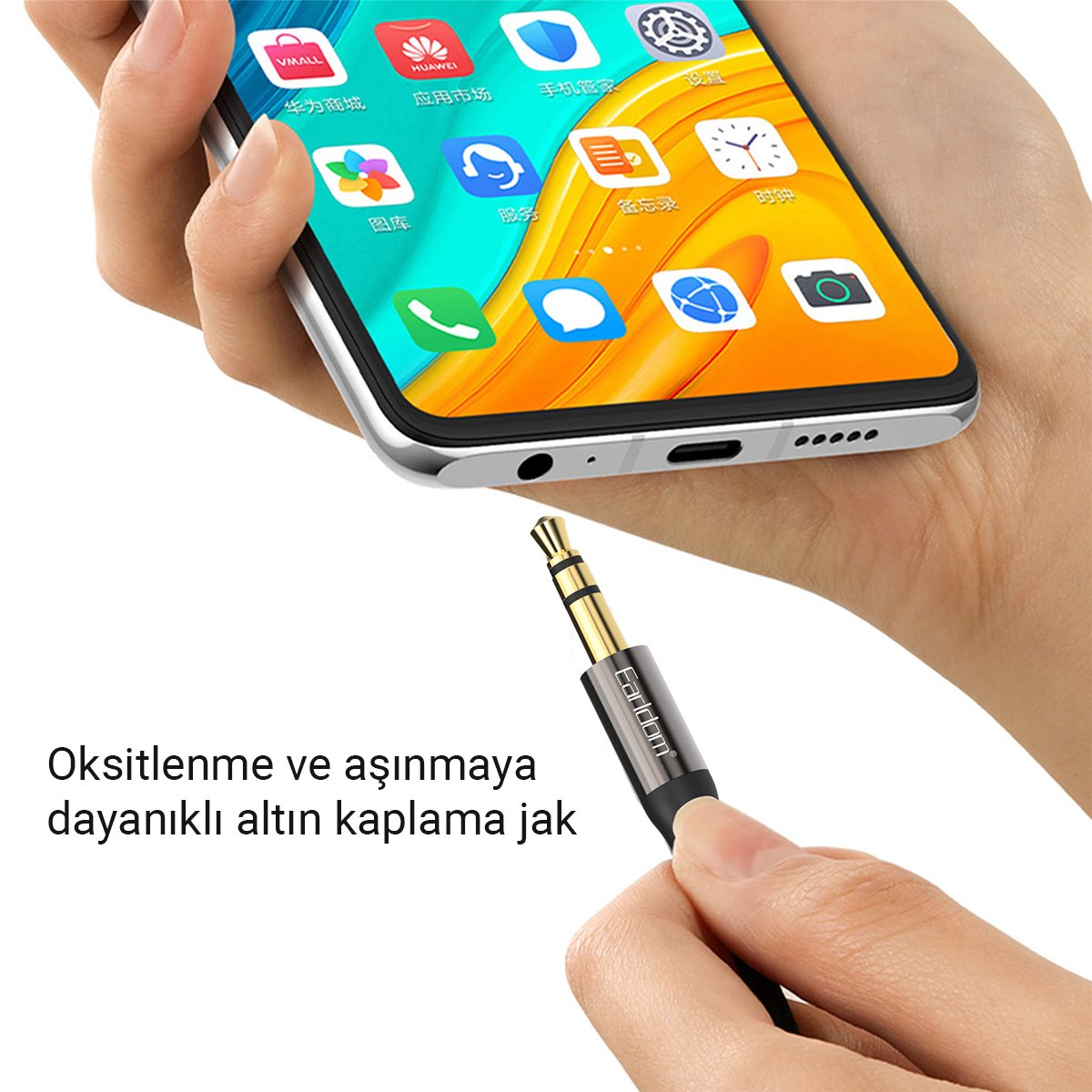 3.5mm Jack Ucu: Tüm 3.5mm girişe sahip cihazlarla uyumlu (telefonlar, tabletler, hoparlörler, kulaklıklar ve araç içi müzik sistemleri).