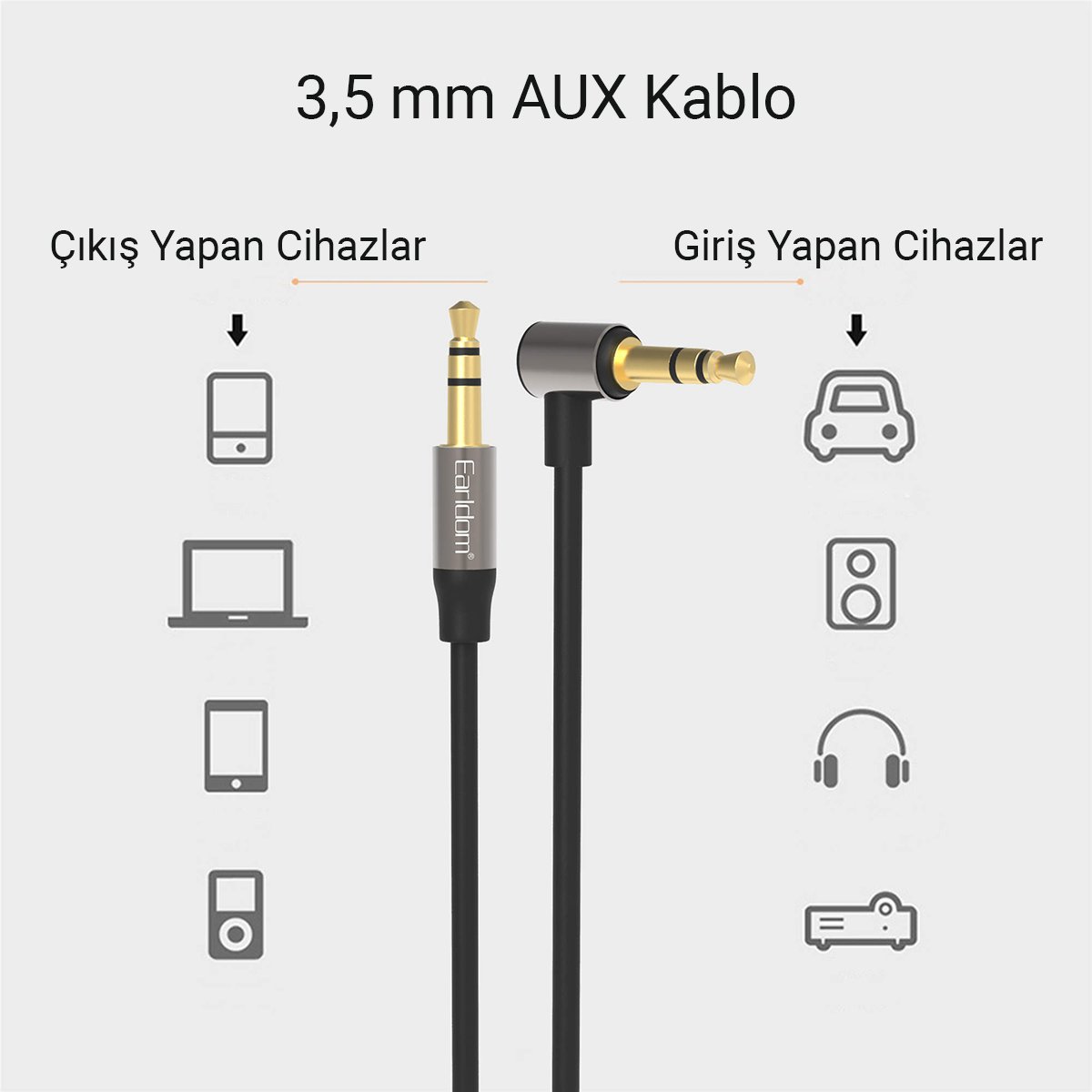 EARLDOM AUX46 TAK ÇALIŞTIR 1M 3.5MM AUX KABLO