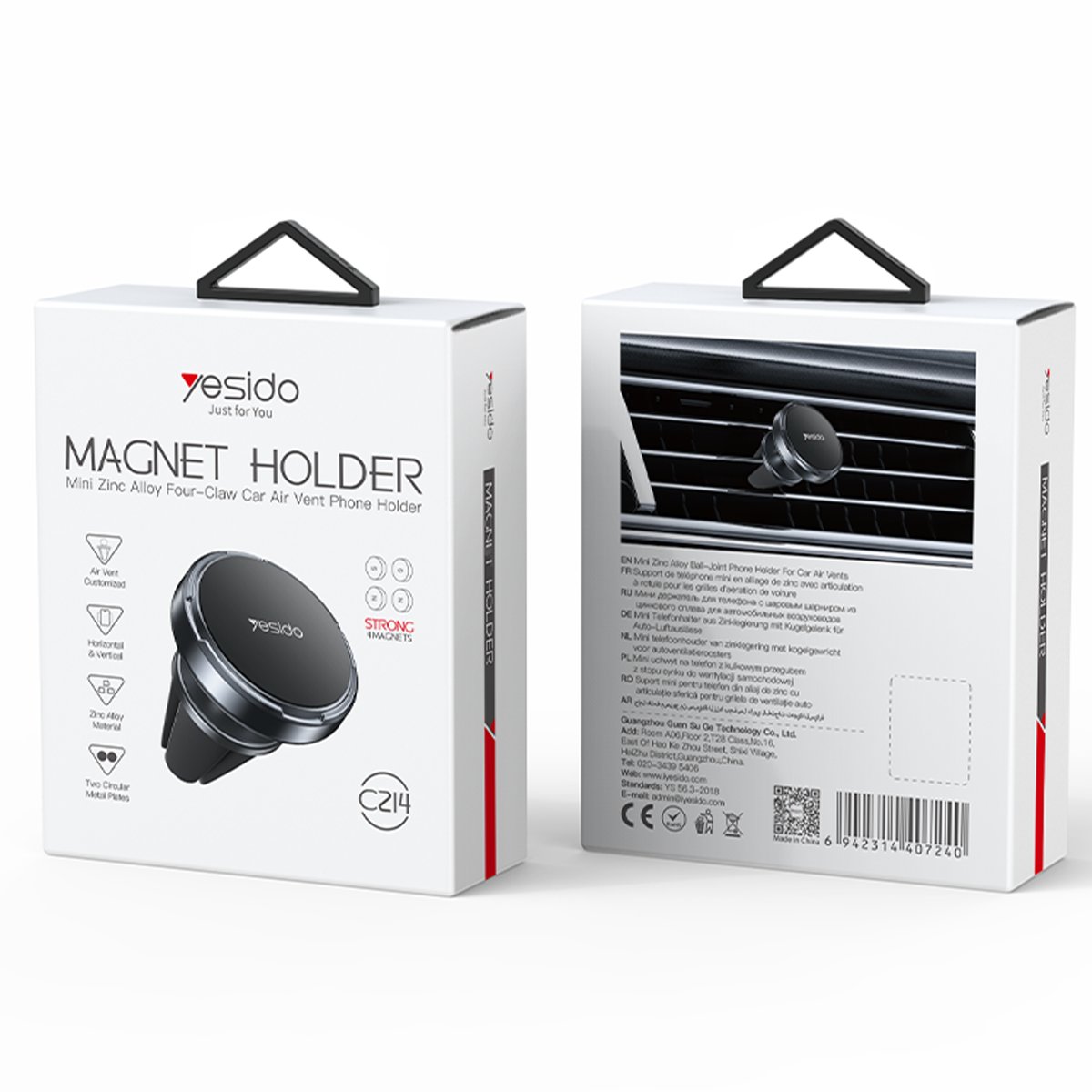 Yesido C214, araç içi kullanım için tasarlanmış pratik ve şık bir manyetik telefon tutucudur. Izgara klipsi sayesinde kolayca montaj yapılabilir ve ayarlanabilir yapısıyla kullanıcı konforunu ön planda tutar.