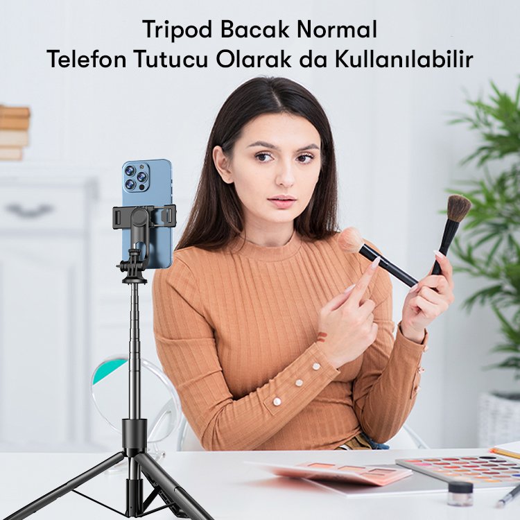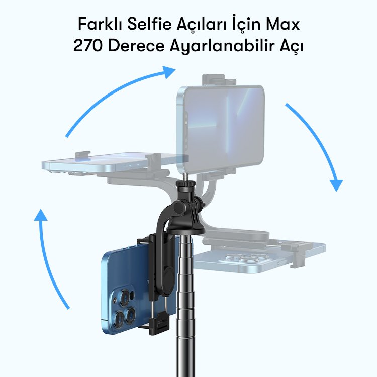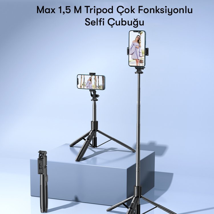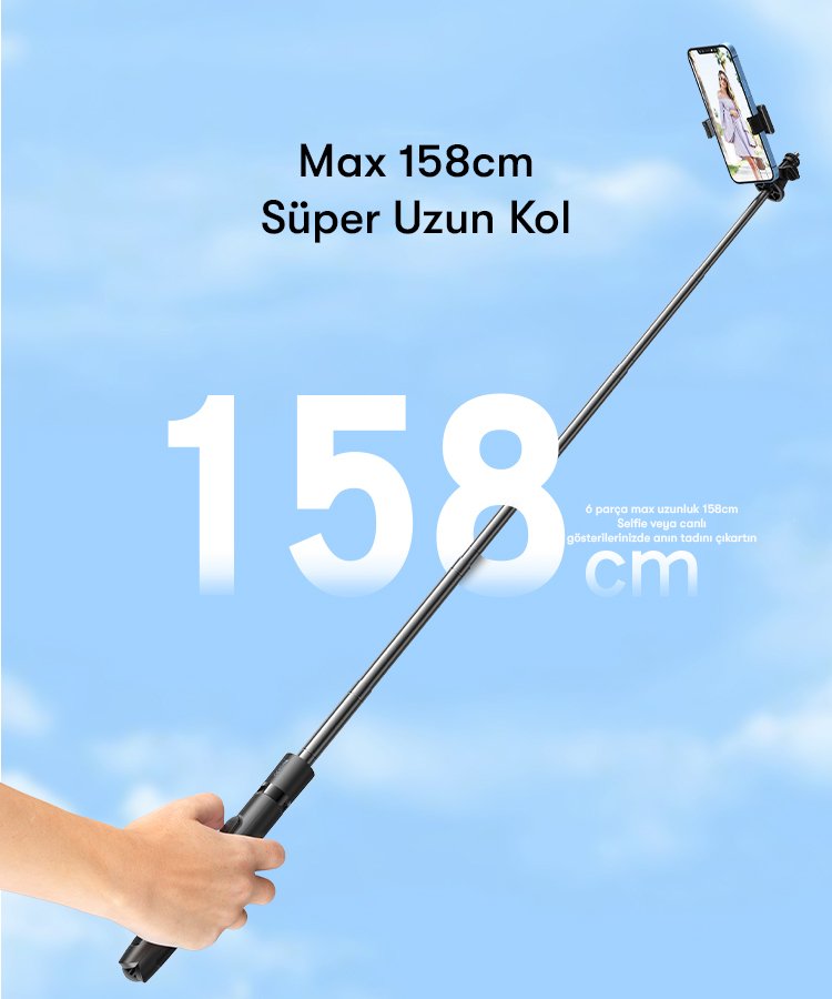1,5 m boyutunda olan tripod uzun ve ayarlanabilir kolu sayesinde 158 cm'ye kadar uzanabilir. Bu, geniş açıları ve grup fotoğraflarını rahatça çekmenize olanak tanır.