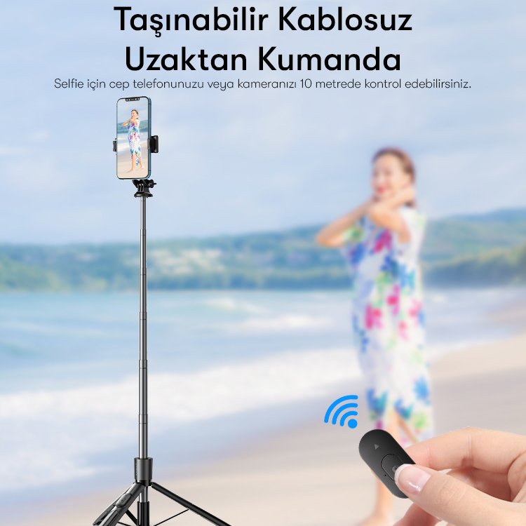 Kumanda, 10 metreye kadar etkili bir bağlantı mesafesi sunar ve taşıması oldukça kolaydır. Ayrıca, tripoda sabitlenen tasarımı, kullanım sırasında ekstra stabilite sağlar.