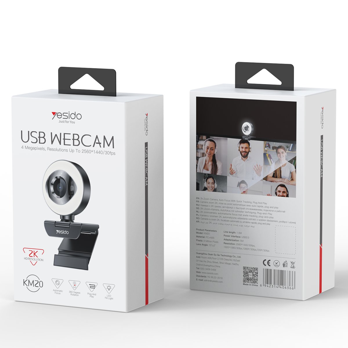 Yesido KM20 2K 4MP Led Aydınlatmalı USB Web Kamera