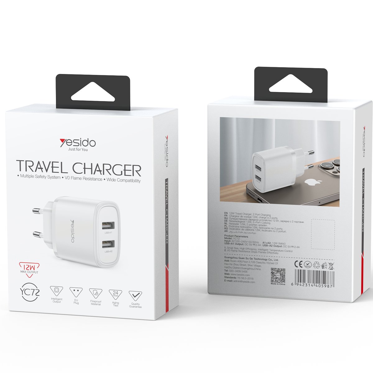 Yesido YC72 2 Adet 12W USB Çıkışlı Hızlı Şarj Cihazı